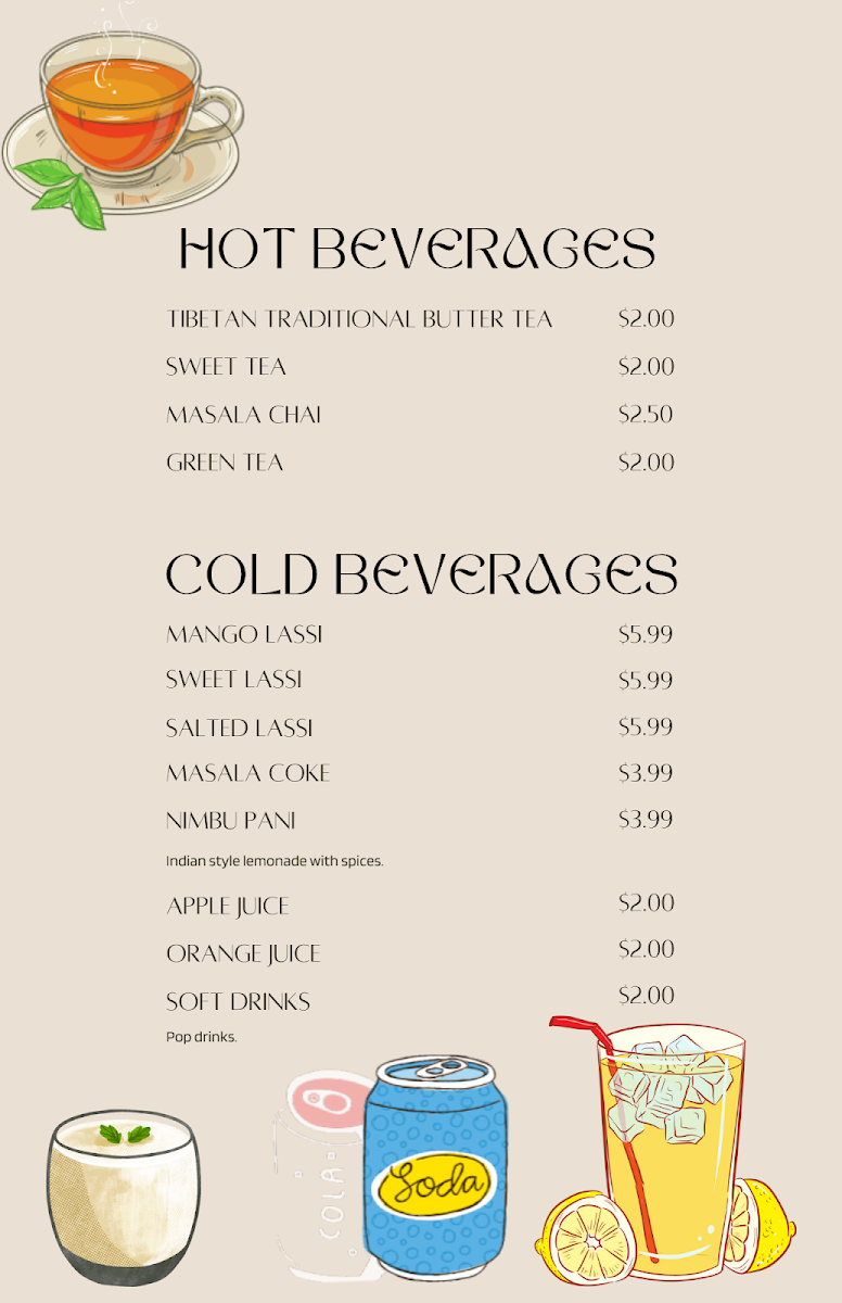 - Beverages: Don't miss out on the refreshing Sweet Lassi or unique Tibetan Traditional Tea.
