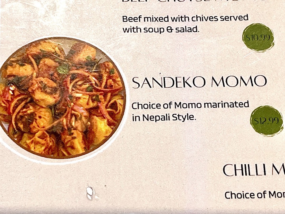 Dumping in nepali style sauce. Served with beef bone soup, salad, and spicy sauce.